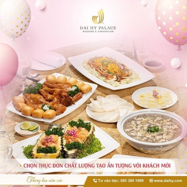 Thực đơn tiệc cưới ngon 2025 tại Đại Hỷ Palace không chỉ là sự kết hợp của hương vị tinh tế mà còn là một phần quan trọng giúp ngày cưới của bạn thêm phần đặc biệt. Hãy đến với Đại Hỷ Palace để trải nghiệm những món ăn ngon miệng và dịch vụ chuyên nghiệp, làm nên một ngày cưới khó quên!