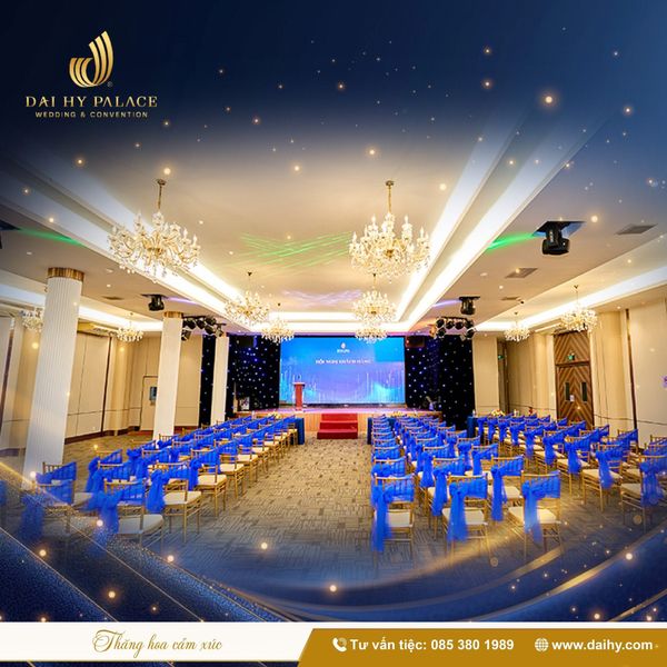 Việc lựa chọn địa điểm phù hợp có thể giúp tiết kiệm đáng kể chi phí trang trí, âm thanh, ánh sáng và phục vụ. Đại Hỷ Palace không chỉ cung cấp sảnh tiệc hiện đại với sức chứa từ 100 - 1.000 khách mà còn có sẵn hệ thống màn hình LED, âm thanh ánh sáng tiêu chuẩn, giúp doanh nghiệp cắt giảm nhiều chi phí phát sinh. Gói Secure Meeting còn hỗ trợ đầy đủ từ không gian, ẩm thực đến đội ngũ tổ chức chuyên nghiệp, giúp doanh nghiệp có tiệc doanh nghiệp tiết kiệm nhưng vẫn chất lượng.