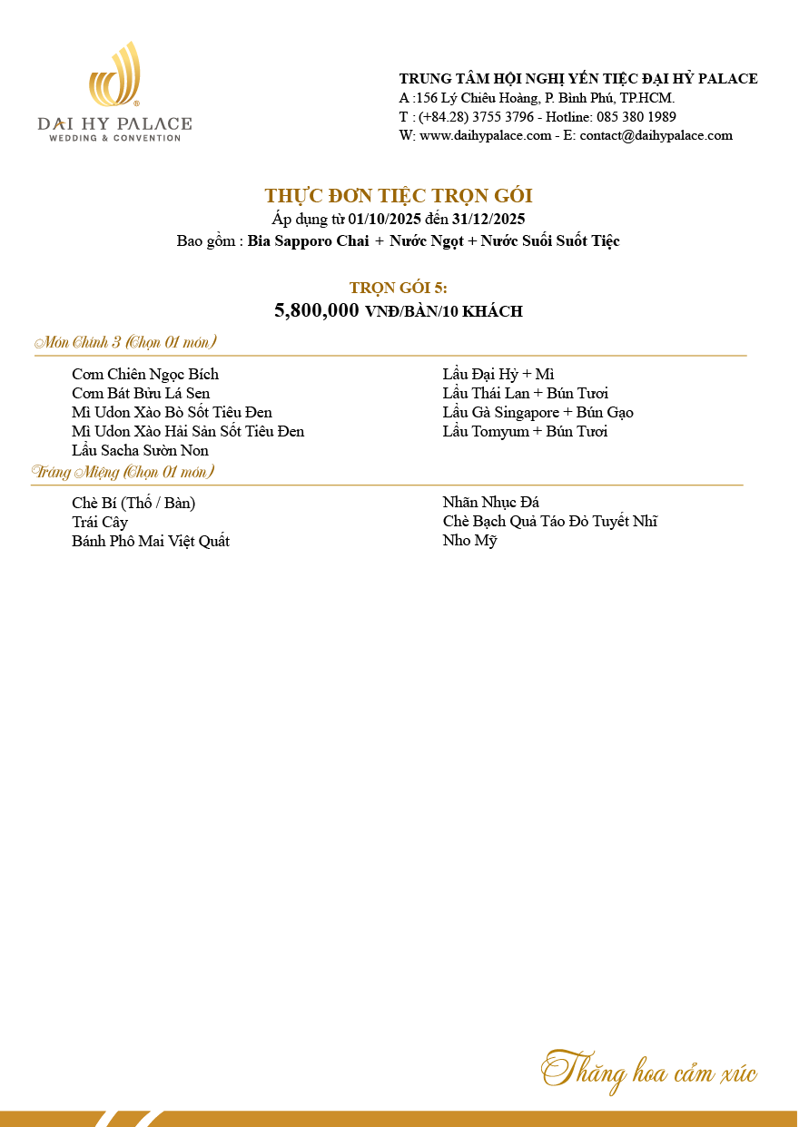 Thực đơn trọn gói 5