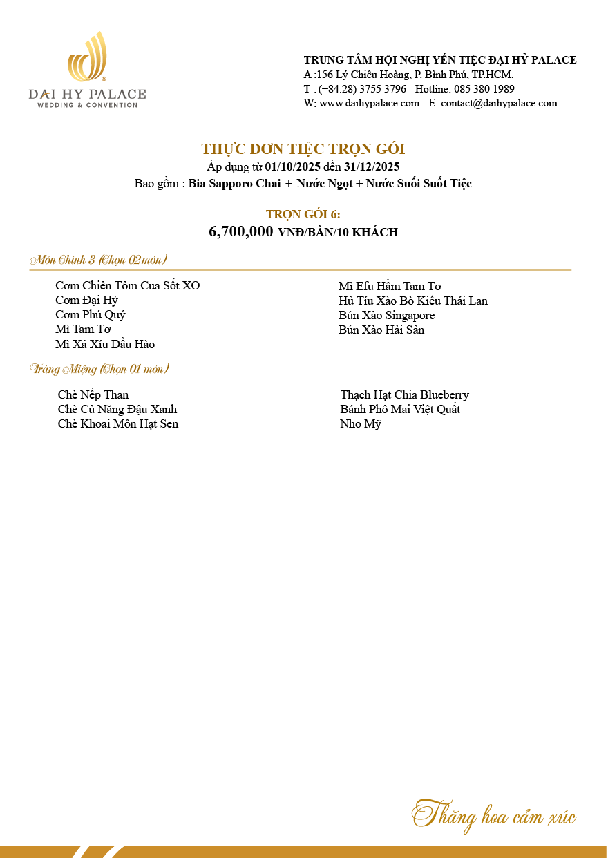 Thực đơn trọn gói 6