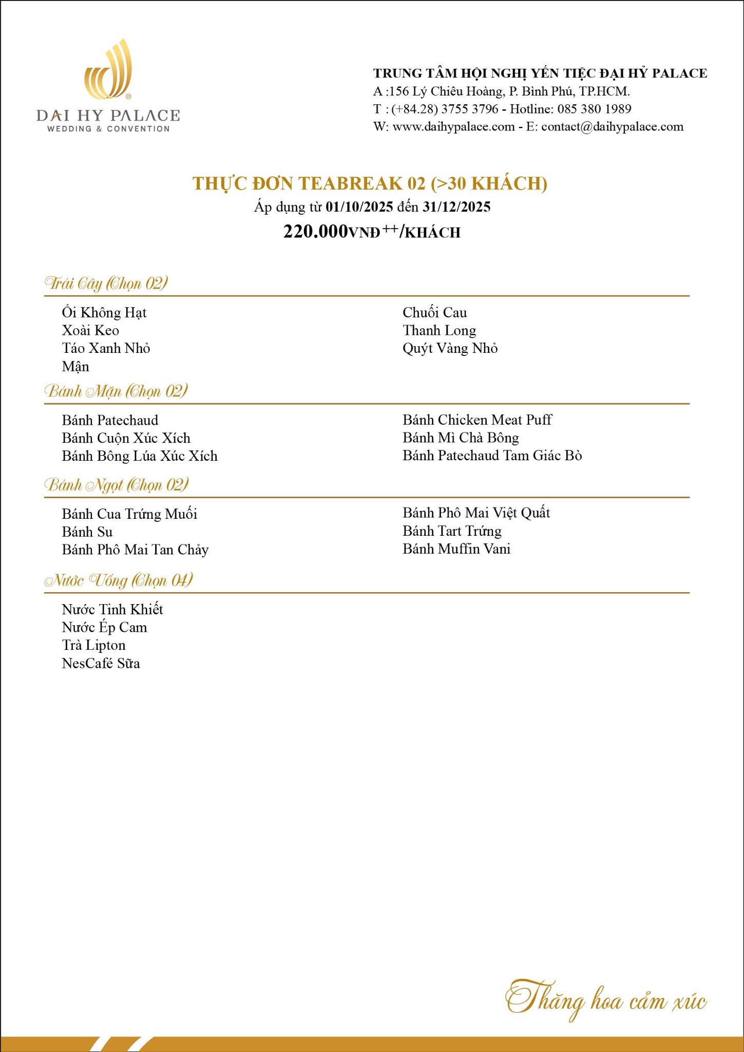 Thực đơn Teabreak 2